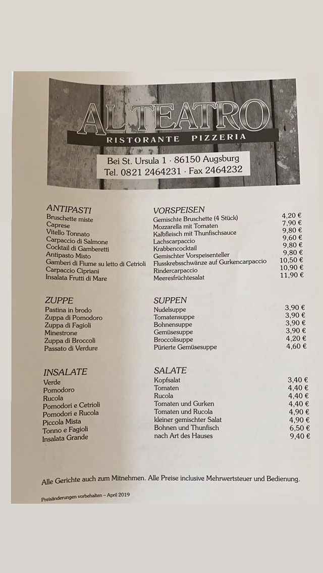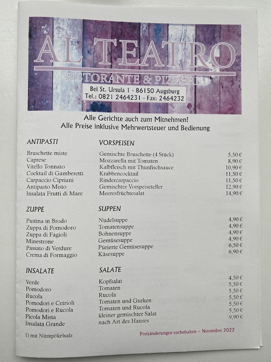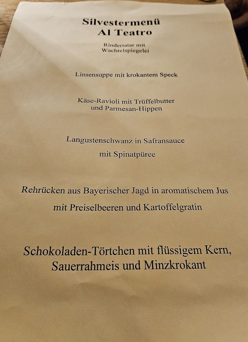 Restaurant Al Teatro Menu